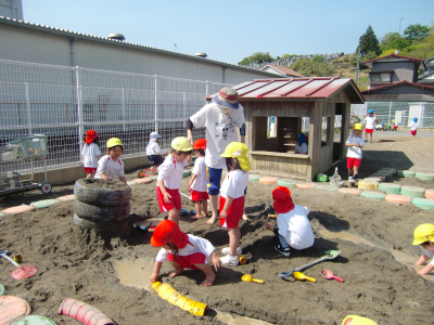 タイヤ山に水を流したら山の中腹から水が出てきたりして